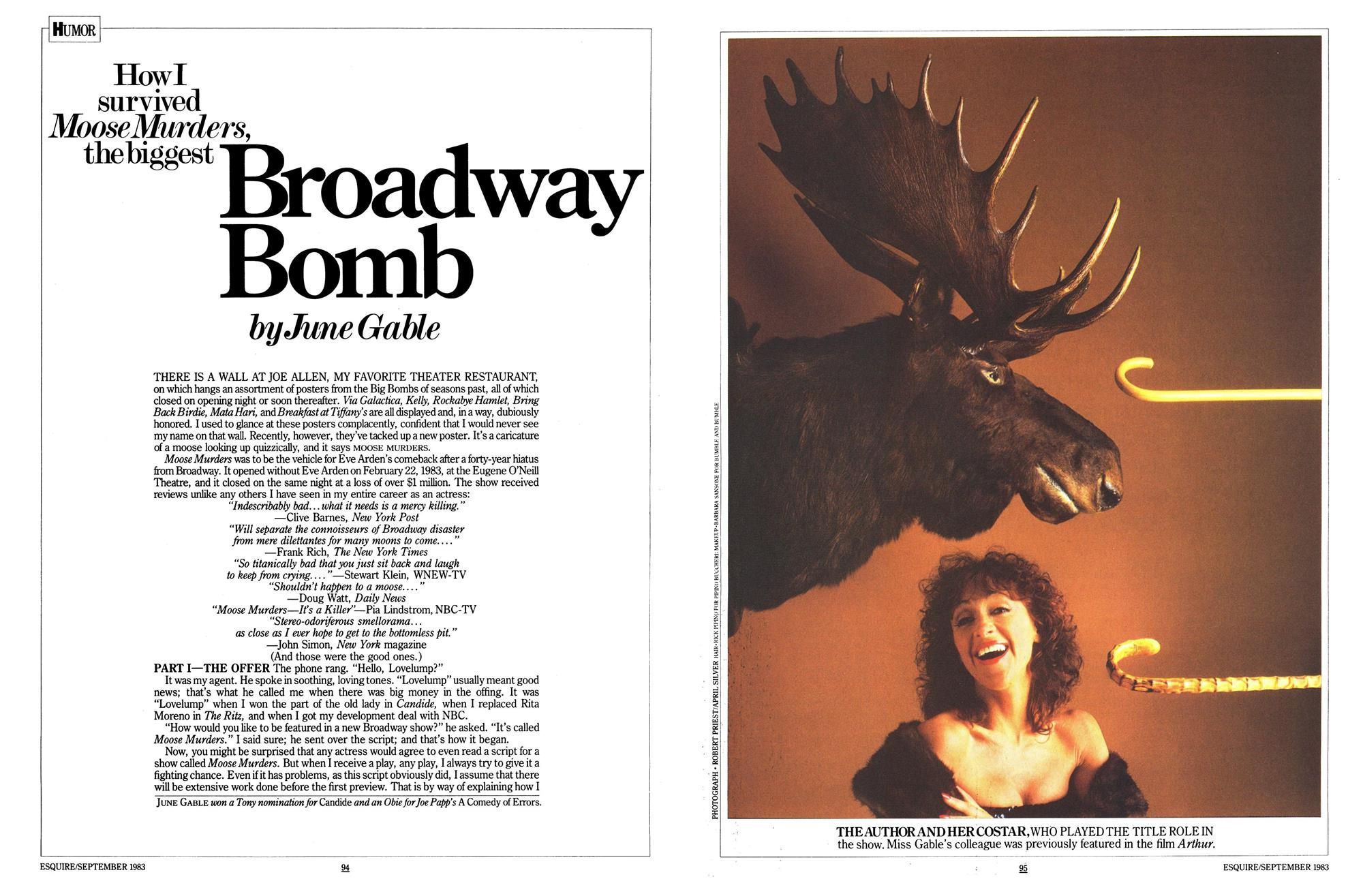 “How would you like to be featured in a new Broadway show?” he asked. “It’s called Moose Murders.” I said sure; he sent over the script; and that’s how it began.