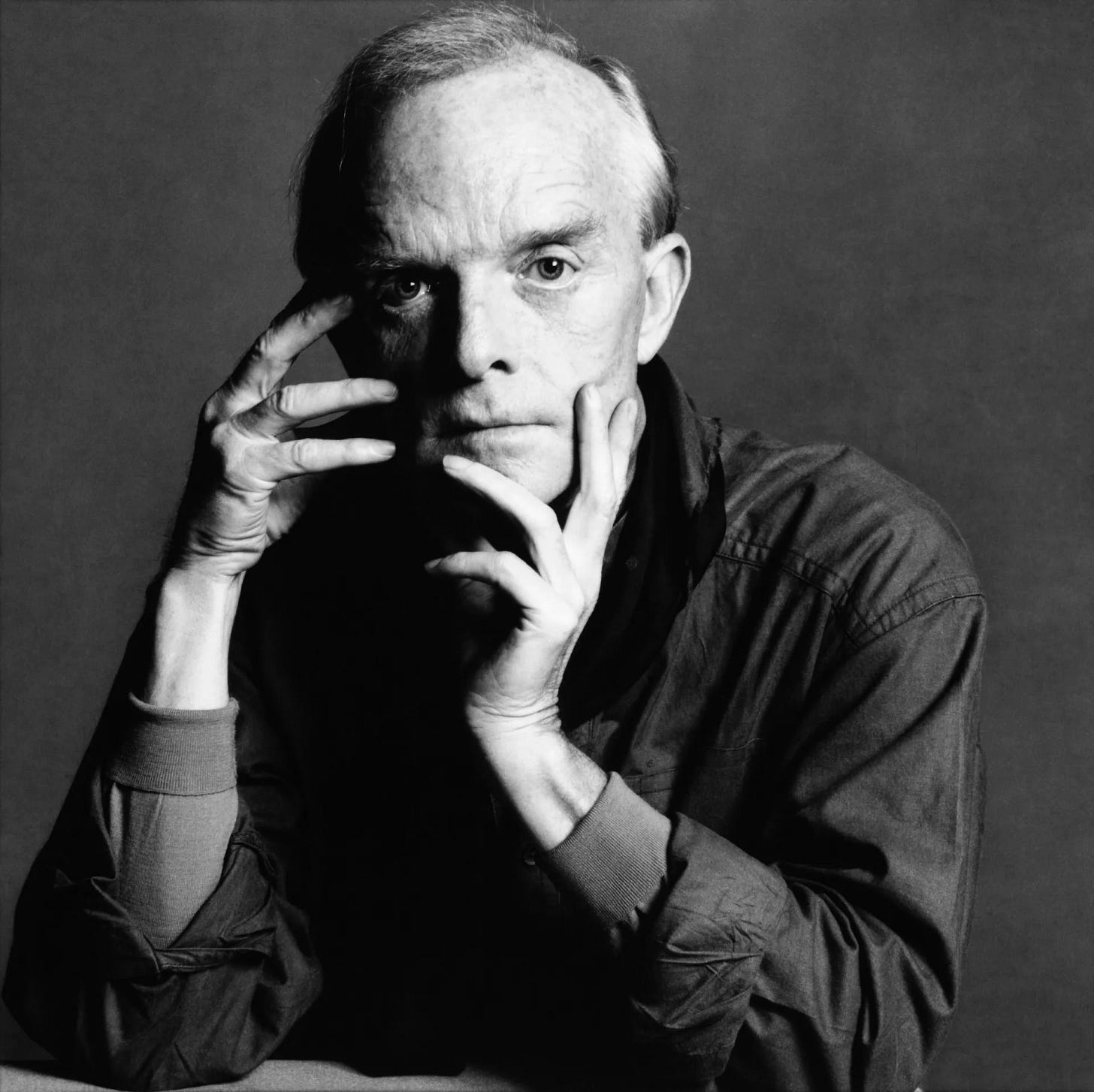 Capote is leaning forward now, his eyes shooting blue lasers as he speaks, his fist pounding the table, punctuating his words.
